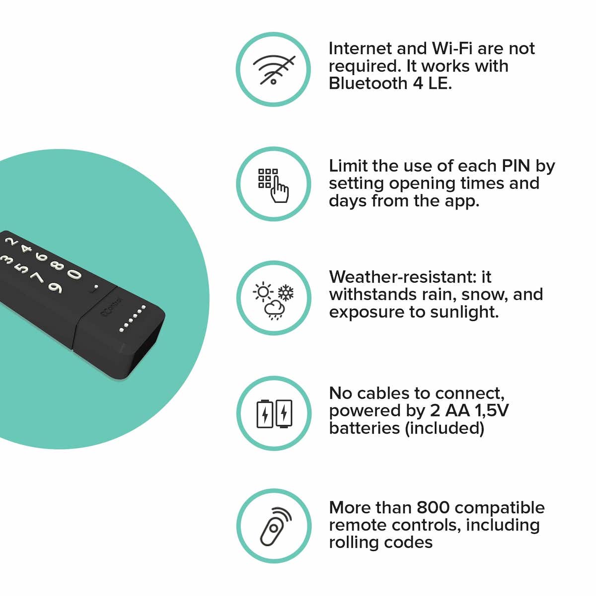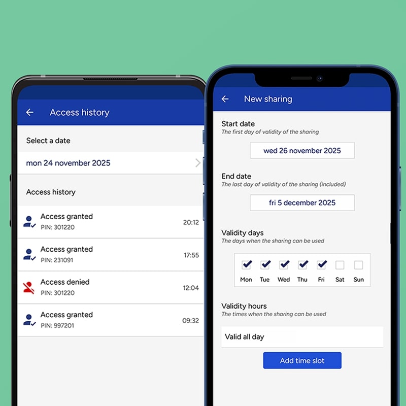 Open your gate and garage with a PIN code. You can also restrict each PIN by setting valid days/times.